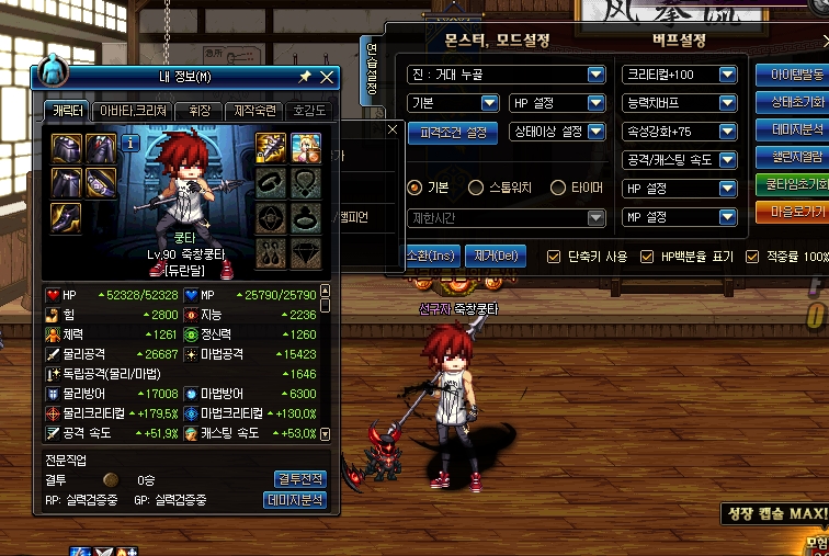 아무튼, 데미지 셋팅 기준 아이템 옵션의 경우는 이러한 것들이 있습니다.
