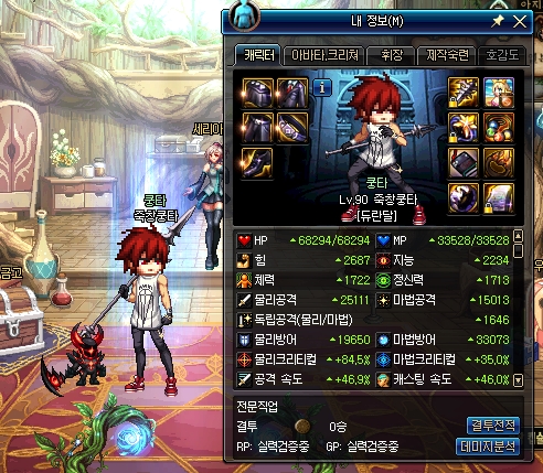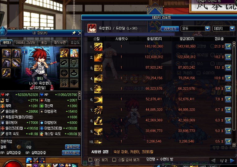 추가데미지는 별도의 카운터, 크리티컬이 적용되어 실상 데미지 격차는 저정도까진 나지 않지만 일단은 쉐도우헌터가 확실한 우위에 있는 모습을 보여줍니다.