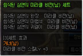 심연의 편린 풀 세트 Lv +2, 침식된 세트 Lv +3, 12부위 외 Lv +0~3 = 미라클 비전 레벨 15~18