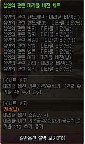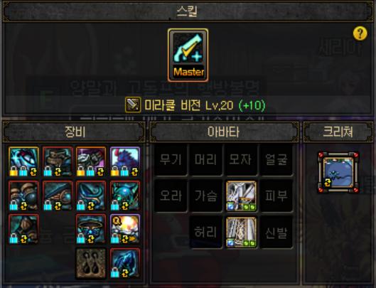 심연의 편린 풀 세트 Lv +2, 뒤틀린 세트 Lv +1, 12부위 외 Lv +7 = 미라클 비전 레벨 20 MAX