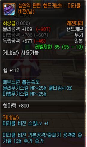 극스위칭 유저들(12부위 외 레벨링 7, S무기) - 미라클 비전 레벨 MAX, 공격력 증가율 40% 추가 증가