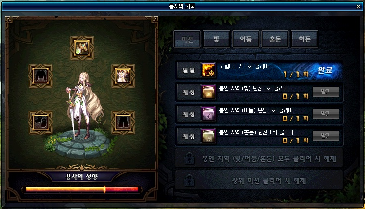 용사를 통해 진행이 가능하며 입장 전에 선택지가 뜨는데, 대답에 따라 용사의 빛/어둠/혼돈 성향이 정해짐.