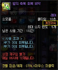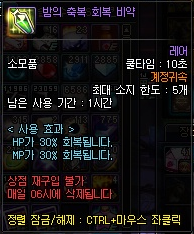 해당 포션은 기존 포션(레미, 칸나의 빵)과 중첩되지 않아 중복 사용이 가능하지만, 갯수가 5개로 제한됨.