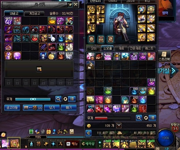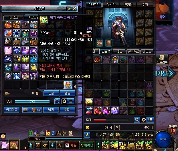 당연히 계정금고에도 적용이 되며, 기능은 동일하게 작용함. 그러니까 금고에도 5개의 물약을 넣는 것이 가능함.