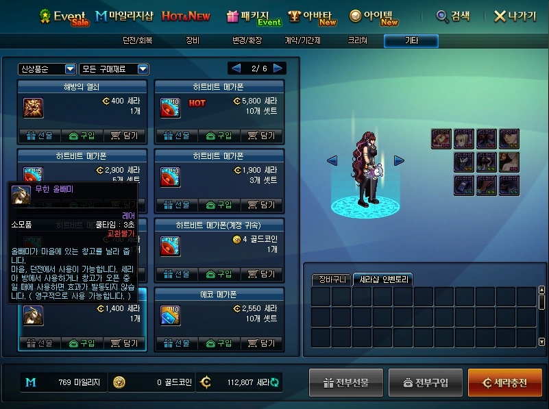 아이템->기타->2페이지에 있으며 세라 외에는 구매할 방법이 없음. 그렇기에 구매 여부는 글을 보는 분들의 선택에 맡김.