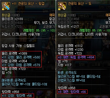그 외에 부가적인 요소로 강화가 높을 수록 항마력이 조금씩 상승함. 강화와 재련의 차이를 요약하면 다음과 같음.