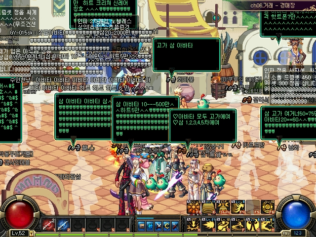 당연히 재료템도 장사꾼들이 장악하고 있음. 스샷은 소위 '벽치기' 라고 불리는 행위임.