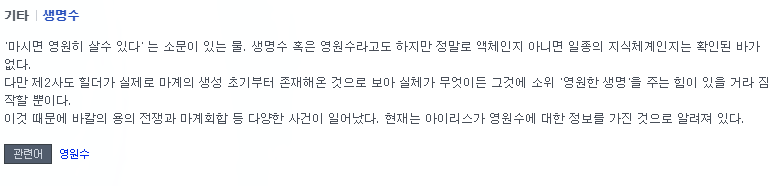 생명수(=영원수)란, '마시면 영원히 살 수 있다'는 소문이 담긴 물이며,