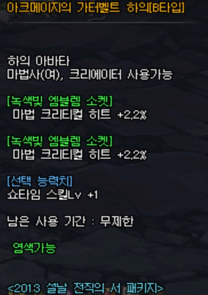 1) 머리/모자에 찬란 지능, 상의/하의에 찬란 마크리를 박는다면 지능 100 & 마크 12%,