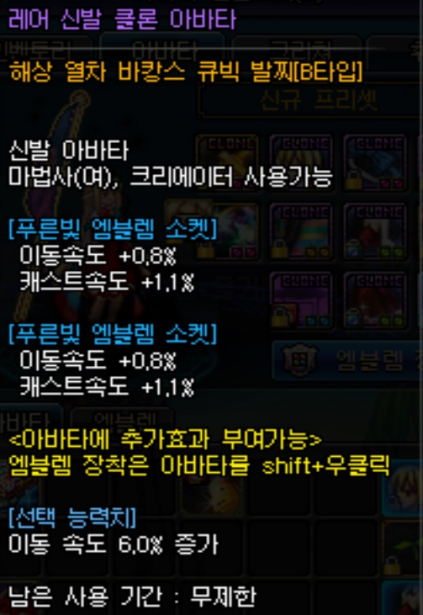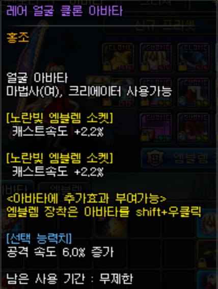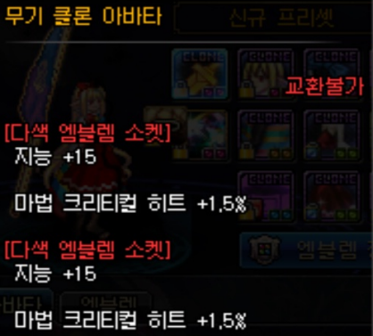 무기 클론 아바타와 오라 아바타의 엠블렘은 피부와 같은 조건으로 세팅하면 됩니다