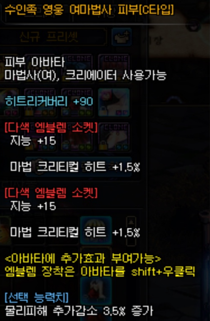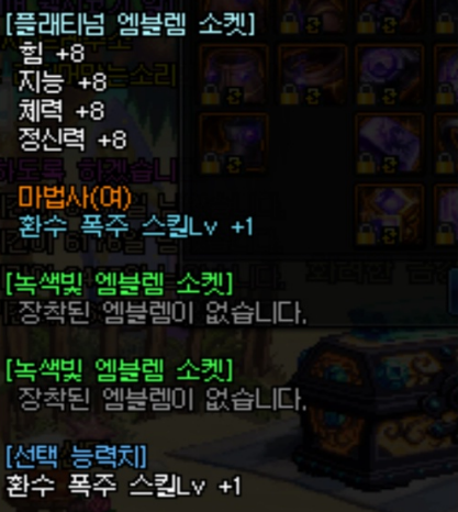 엠블렘은 지능/지마크/마크 중에서 만크 후 지능을 최대한 올릴 수 있는 세팅으로 택하시면 됩니다