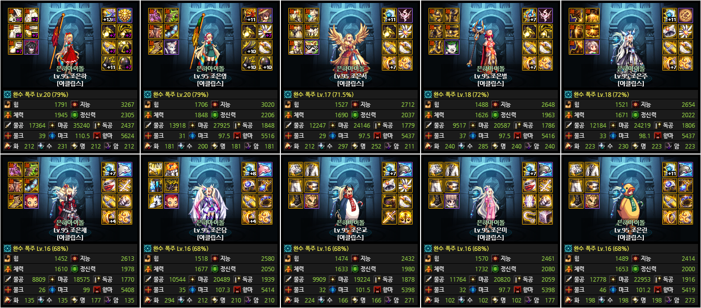 헤일롬 - 쥐똥만한 전체 딜과 유틸 상승, 본인 딜보다는 파티원 공이캐 0.5% 더 올려주는 용도로 사용