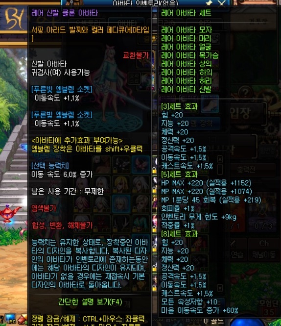 신발 아바타 : 힘보다는 이동속도 옵션 필요 (물/마공캐릭터 공통)