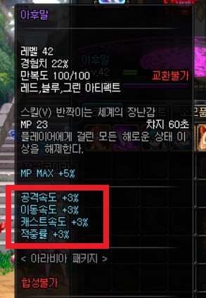머리 모자 아바타 : 지능보다는 캐스트속도 옵션 필요 (빙결사 등 일부를 제외한 모든 마공캐릭터)