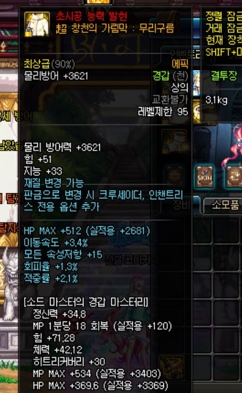 물리 공격 캐릭터의 경우에는 신발을 힘보다 이동속도 옵션으로 바꾸는 것이 유리합니다.