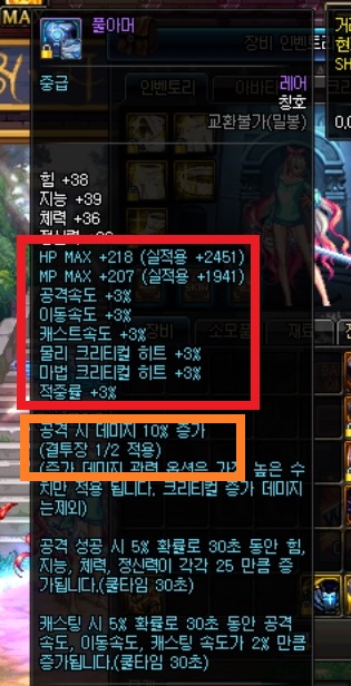 얼굴, 목가슴 아바타 : 공격속도 옵션 필요 (물/마공캐릭터 공통 필수)