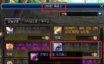 레이드랑 같이 매주 목요일에 초기화 됩니다!!