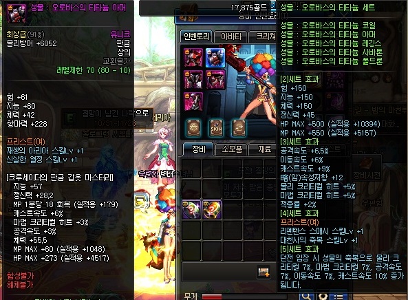 만렙 달성후 착용한 마법봉인 아이템 풀 셋트!! 를 전부 다 껴도 ..