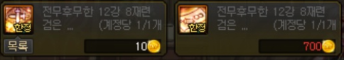 12강 8재련 무기를 받기위해 모아야하는 주화는 총 710개 입니다.