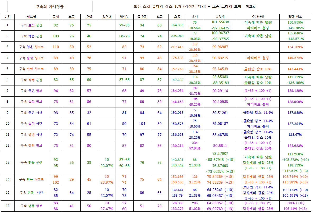 [공통] 100제 조합표 (구속의 가시덩굴) (20)