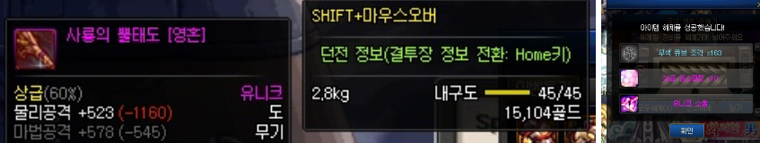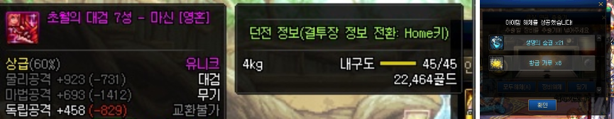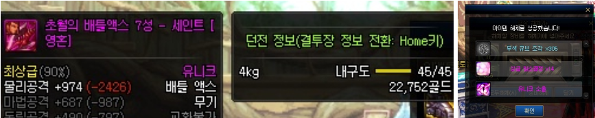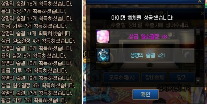 ㄴ연금재료 : 용의심장, 황금가루 등 장비레벨에 비례한 개수가 나옴