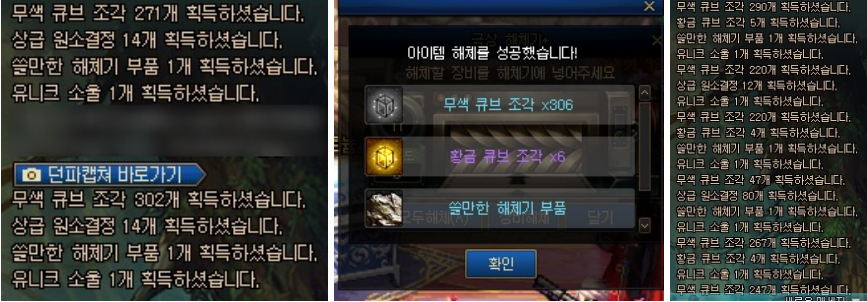 ㄴ황금 큐브 조각 : 장비 레벨에 비례한 개수가 나옴. 상급 원소결정 대신 나옴