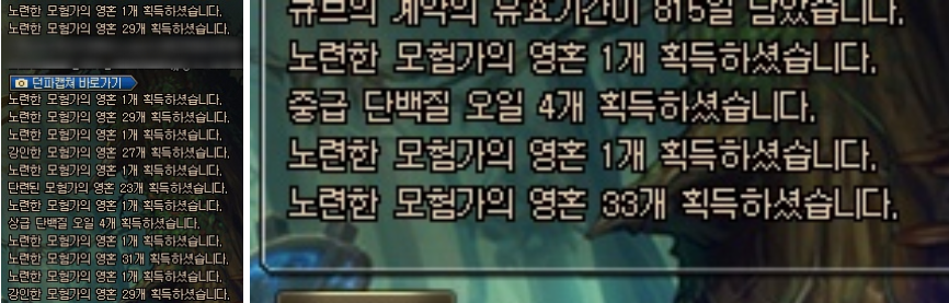 *모험가의 영혼 : 장비 레벨에 비례한 개수가 나옴