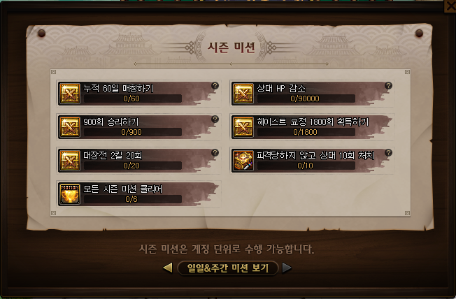 이 시즌미션은 정규 시즌이 종료될 때마다 초기화되는 미션으로,