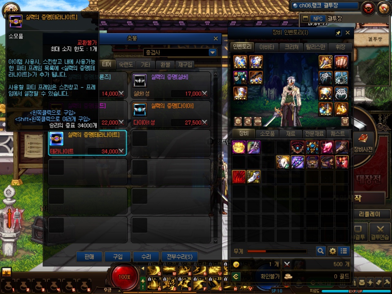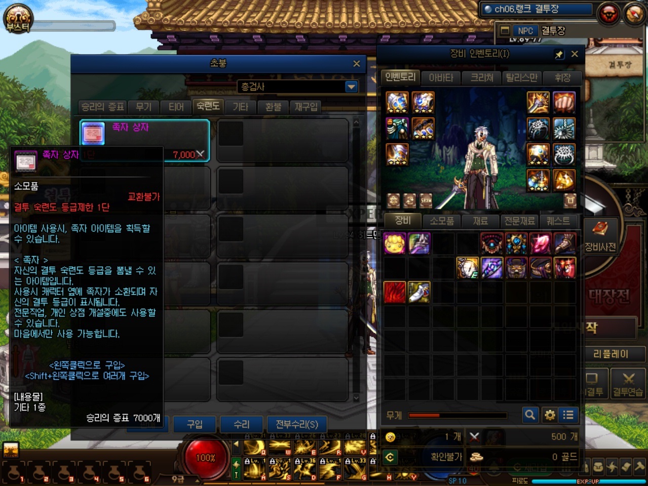 (결투등급 족자는 어떻게 쓰이는지 확인해보려 했지만 1단 이상부터 사용이 가능하다는 조건이 있습니다.