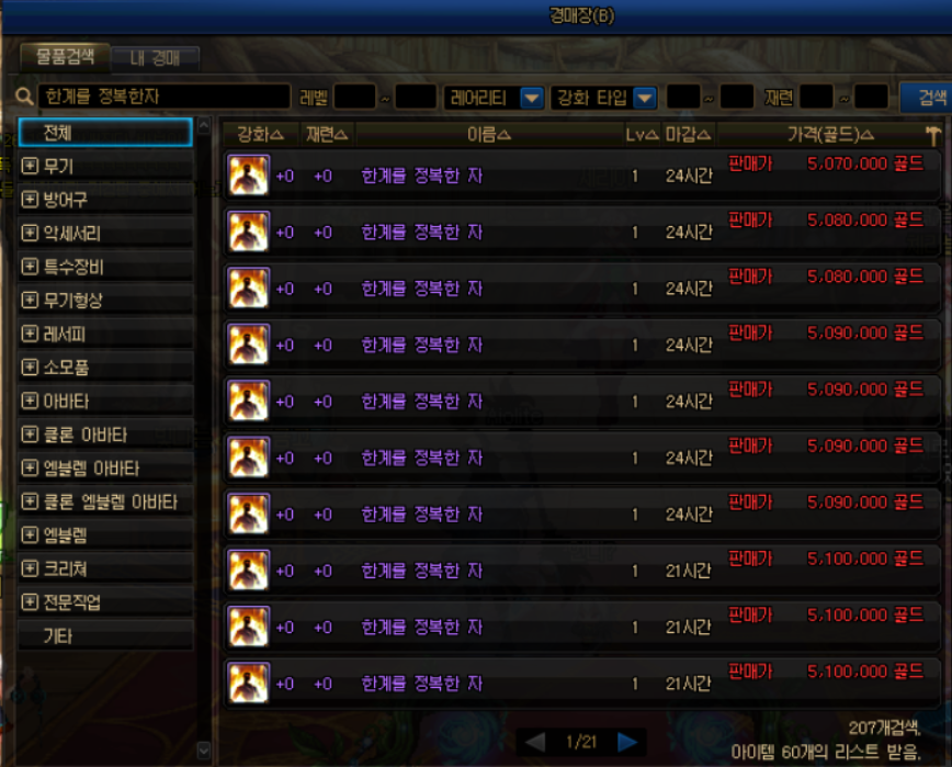 경매장에 한계를 정벅한자 칭호를 500만골쯤에 구매하실 수 있습니다.