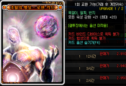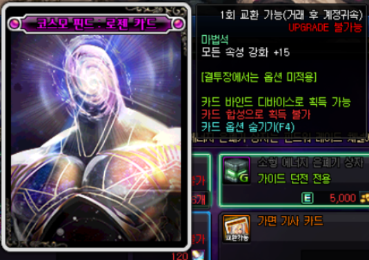 두번째로는 핀드워를 도시면 획득하실 수 있는 로젠카드인데요. 요거는 보주형식이 아니라 마법부여가를 찾으셔야하는 귀찮음이 있습니다. 레전풀만하면 깨부수고다니는 핀드워이니 수집 난이도는 안톤의 심장보다 더 좋다고 생각합니다...