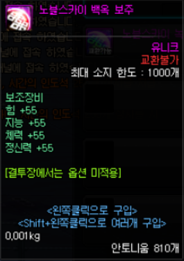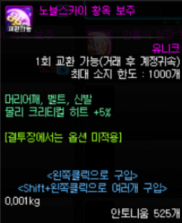 왼쪽 노블스카이는 구매가 가능하며 현재 거의 최종마부라고 봐도되는 5프로 보주입니다. 안톤 토벌전을 도시면 획득하실 수 있는데... 그냥 구매하세요. 안톤토벌전은 50만골드는 우숩게 볼정도로 멘탈 꺠지기가 쉽습니다.