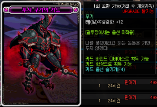 프레이 요격/정원보스들이 주인공인 무기속강부여카드입니다. 물마독보주를 무기에 박지않는 이유는 바로 이 카드들의 존재때문입니다. 마계대전산 듀얼속강부여도 있는데 요거는 취향차이이니 가격보시고 감당할만하다 하시면 마계대전쪽 카드 발라주시면 됩니다.