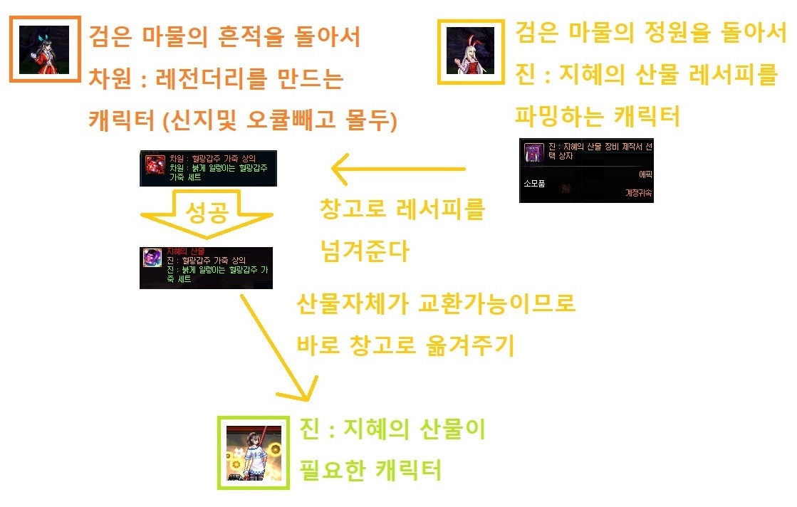 계정귀속인 진: 지혜의 산물 레서피 상자를 계정 창고를 통하여