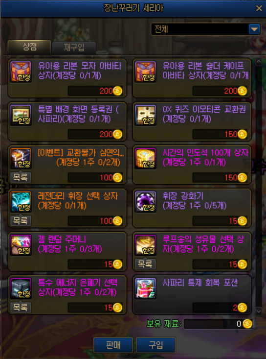 이것만으로는 모든 상점물품을 사는데에는 100개가 부족하네요!!