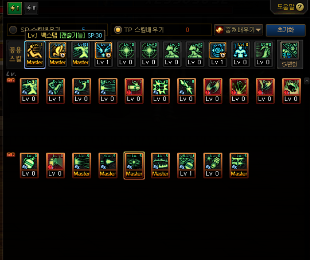 TP 스킬은 본인이 마스터한 스킬 위주로 포인트를 투자하시면 됩니다.