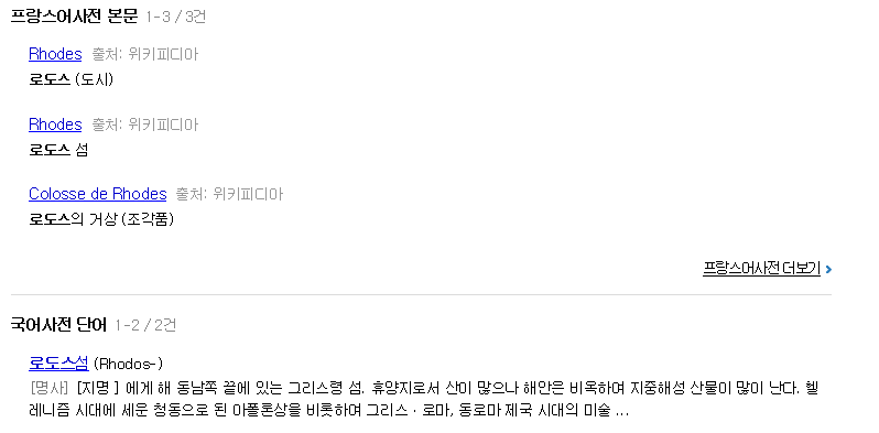 로도스에 대해 검색해보면 그리스의 로도스 섬과 함께 로도스의 거상이란 단어가 각 언어에서 나온다.