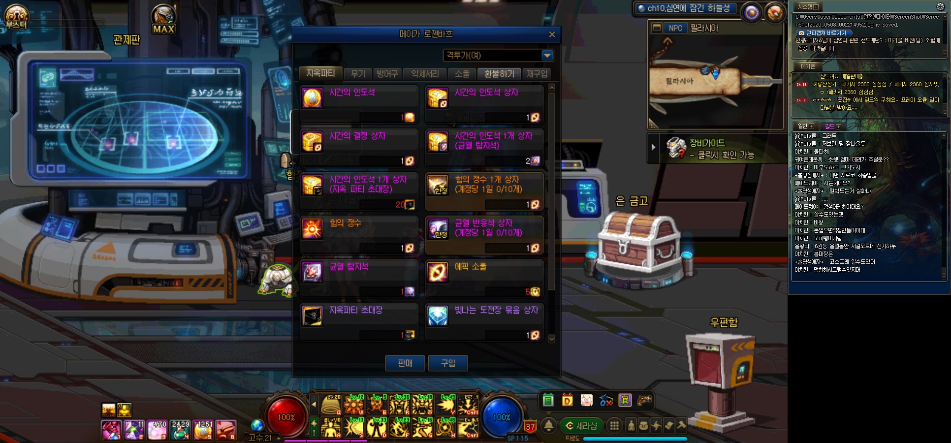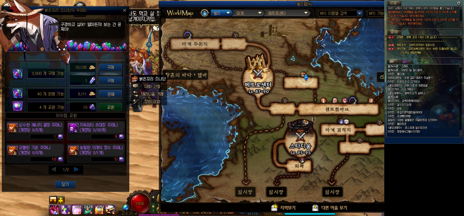 길드 던전 입구에 보시면 길드 주화로 휘장과 잼을 살수 있으며 길드주화는 길드던전 사냥과 출석, 길드 체팅, 길드원 파티 등을 통하여 모을수 있습니다.