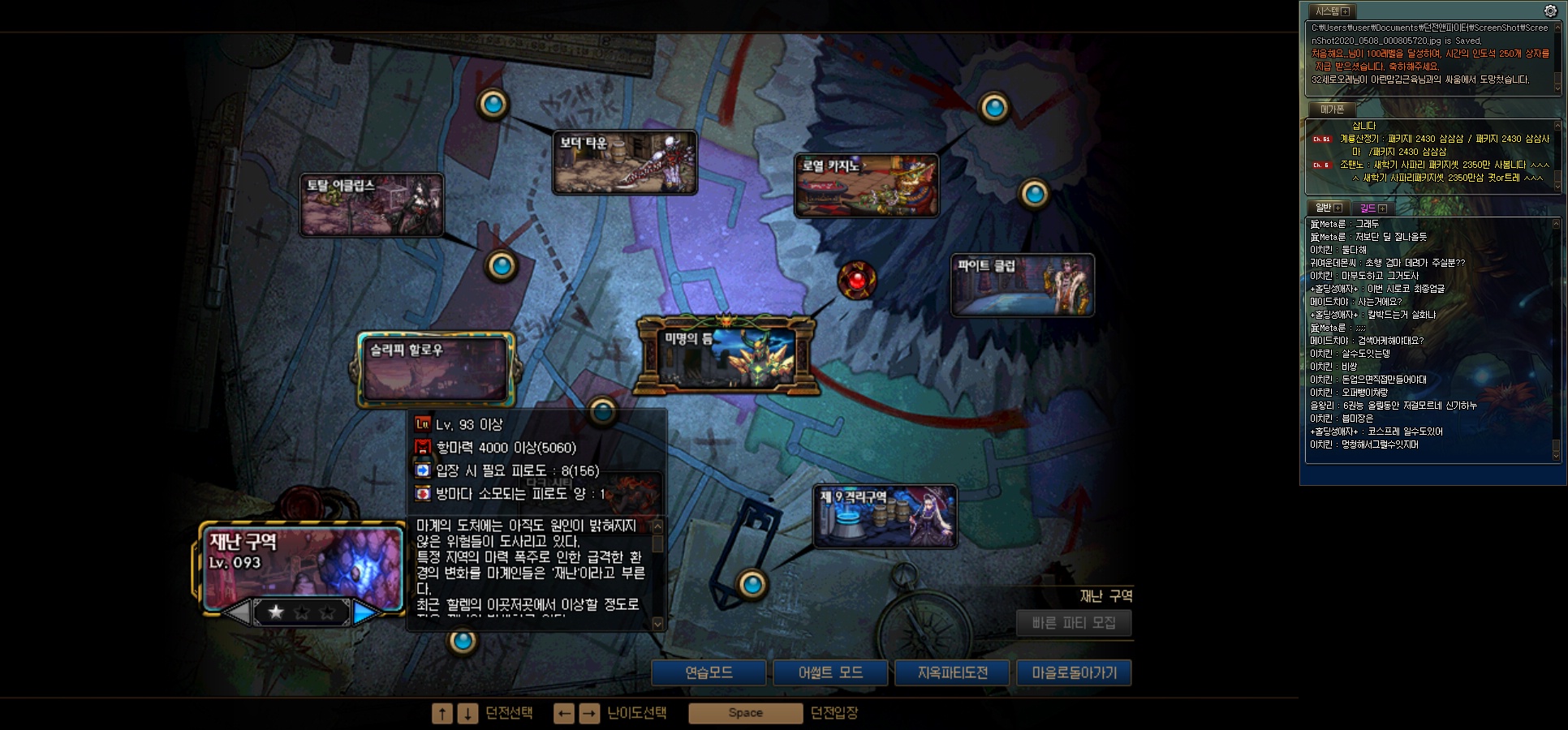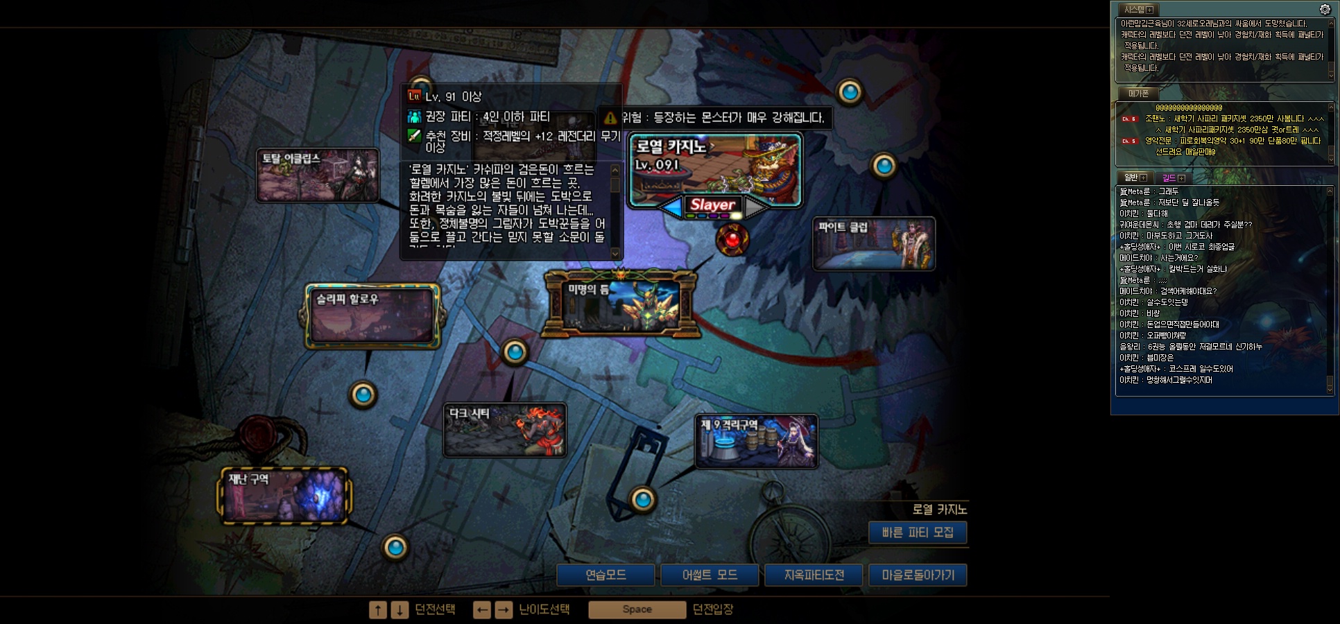 <쩔비>현재 파티는 구할수 없으며 싱글모드(가이드 던전)가 가능합니다.