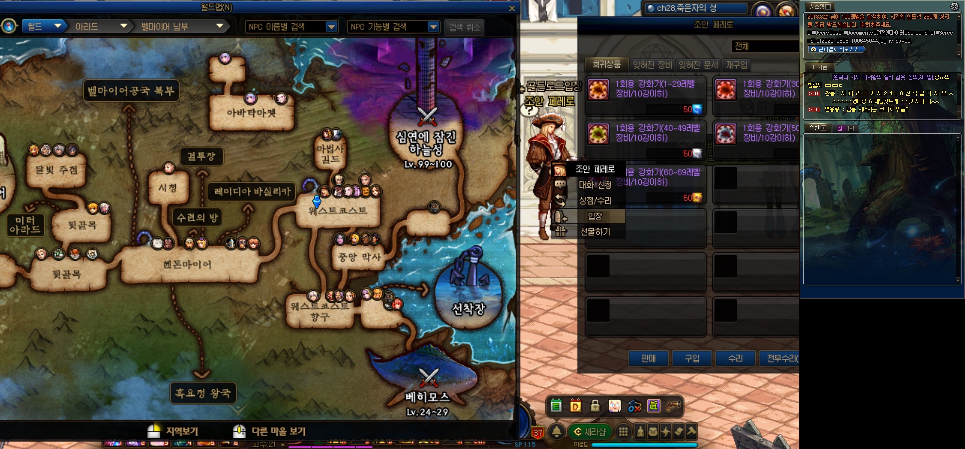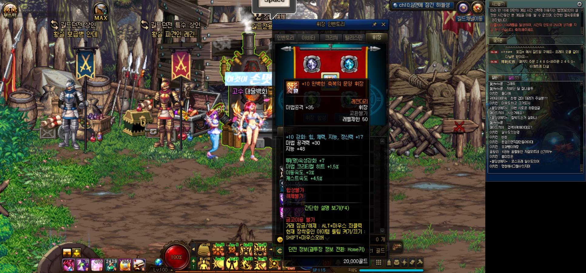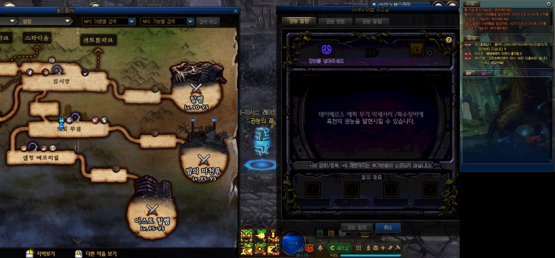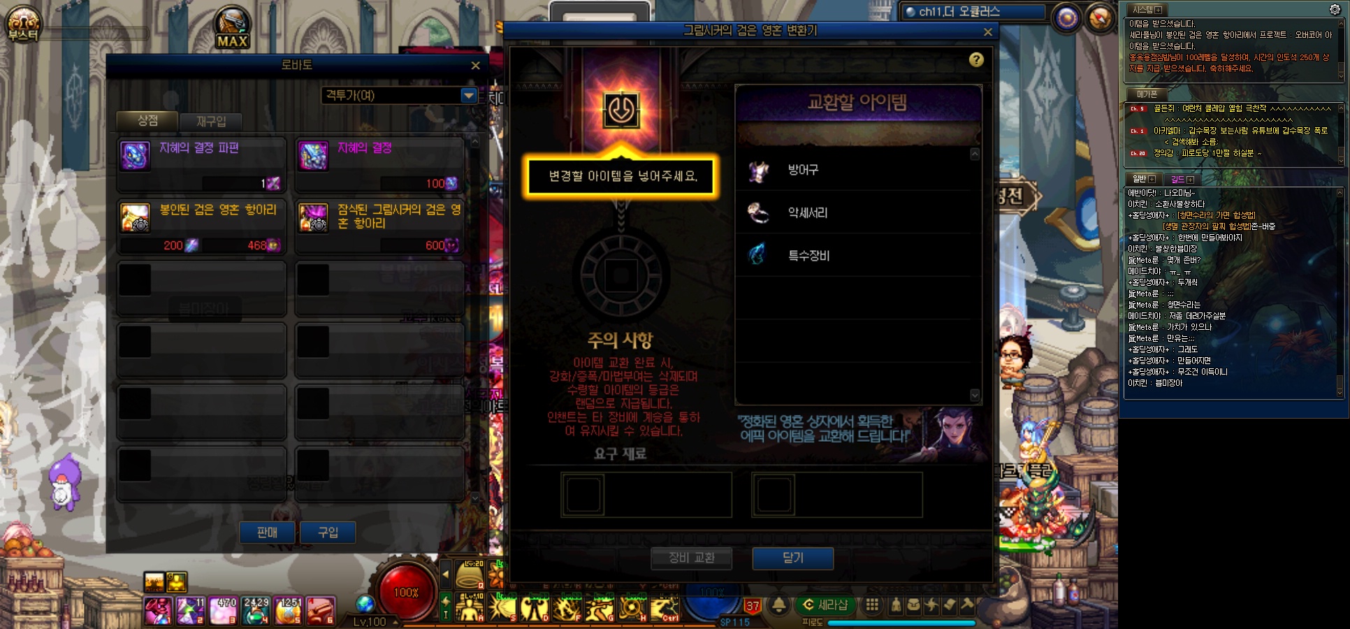 세김은 95제 할렘픽 이상의 장비를 100제 유니크 이상의 장비에 강화/즐폭. 마부 수치를 옮겨줍니다.