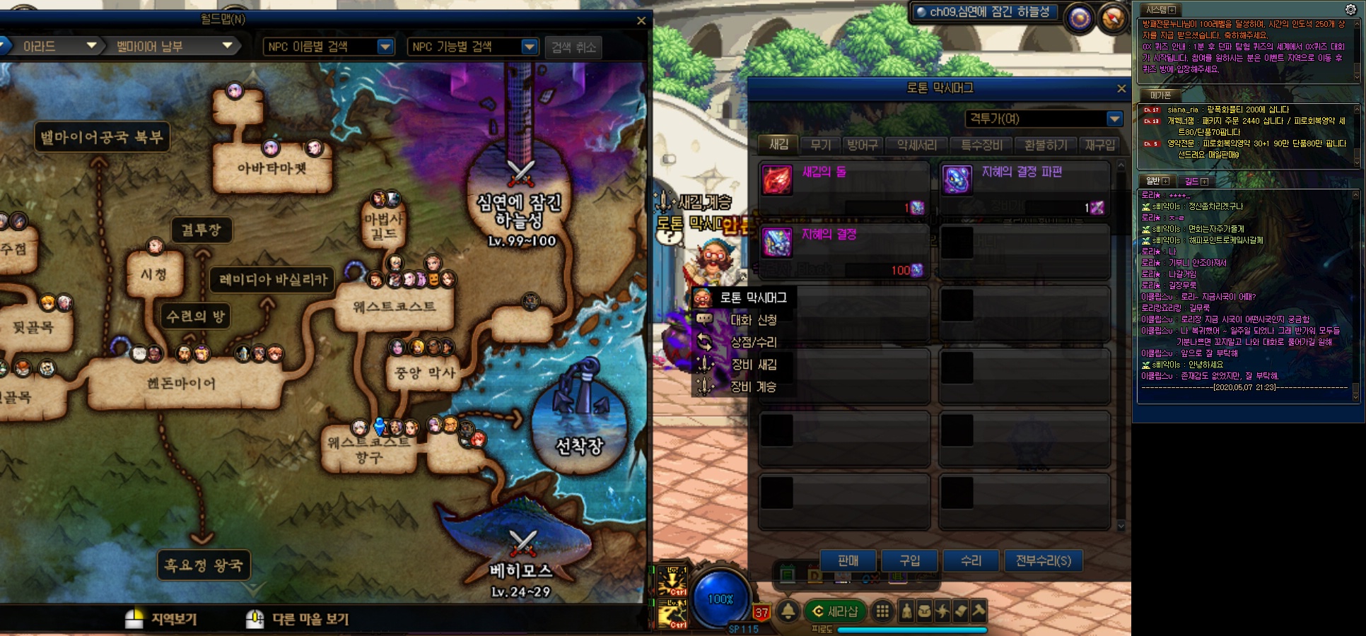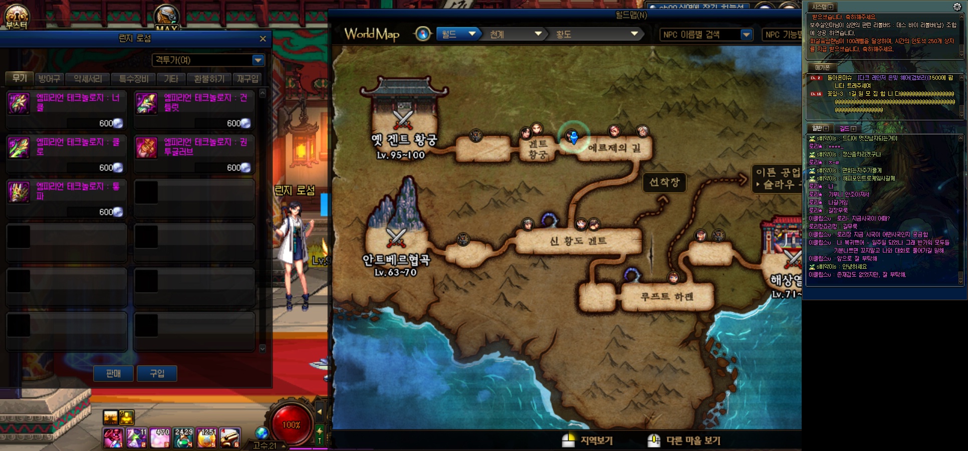 겐트 황궁에서 파밍한 재료로 100제 유니크 아이템을 정가 하시면 됩니다.