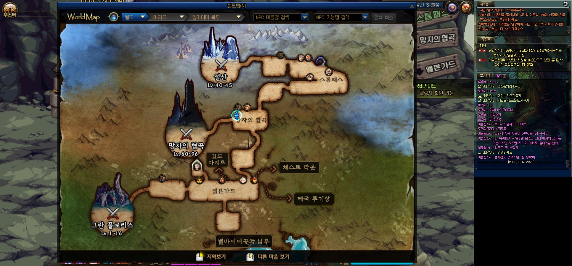 망자의 협곡은 외전퀘 클리어시 세리아방 에서 오른쪽으로 나가면 바로 갈수 있습니다.