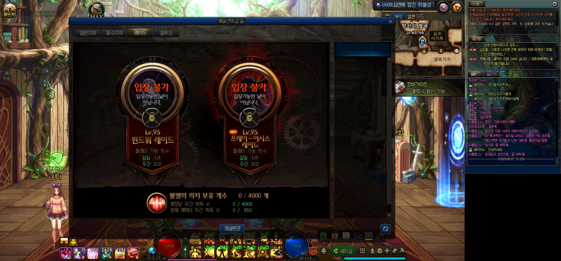 레이드 요일이 정해져 있으며 레이드 요일(토요일 ~ 수요일)이 아니면 입장이 불가 한 던전 입니다.