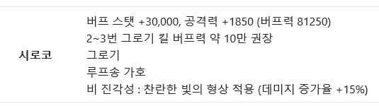 버프스탯 30000이라는것이 사실 버프 + 버프강화 + 1각이긴하지만 요즘 시로코가 그거 다 쓰고 패서 바로잡는 추세다 보니 그냥 그대로 보셔도 됩니다.