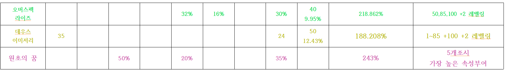 위에 언급했듯 버퍼가 속깎 60을 해주다보니 속성저항이 -10이라 실제 효율은 위보다 낮습니다. 단 버퍼가 속깎을 못해주는 상황이거나 솔플이라면 위보다 효율이 더 높습니다.