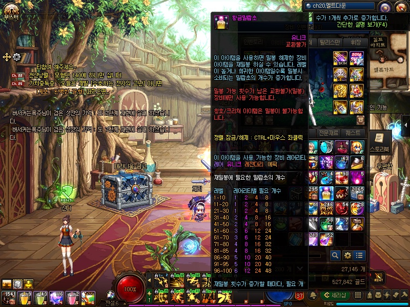 * 장비 재밀봉에 필요한 황금밀랍초 소모량 및 공식이 변경됩니다.