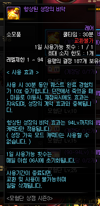 94~99레벨 캐릭터가 사용 시 30%가 오릅니다.