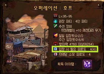 피로도 8 필요 ※피로도 7 이하 입장 가능
