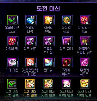 도전 미션에 해당된 컨텐츠 입장 정보를 정리한 표 입니다.