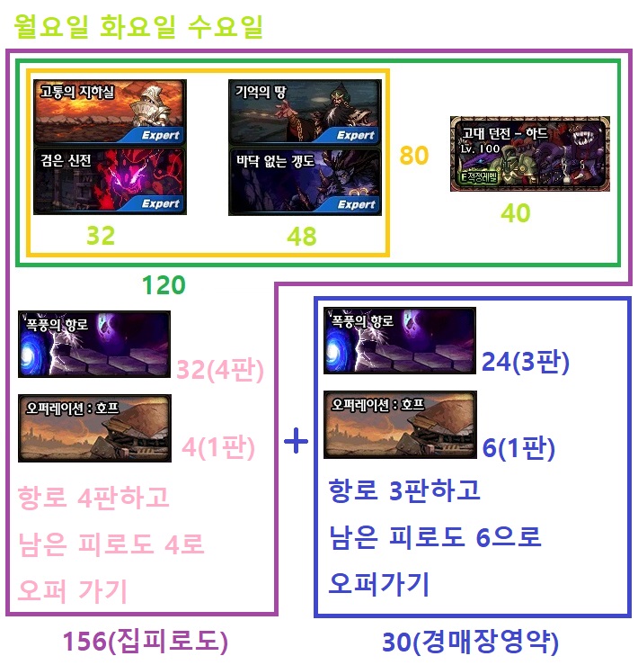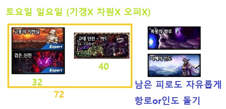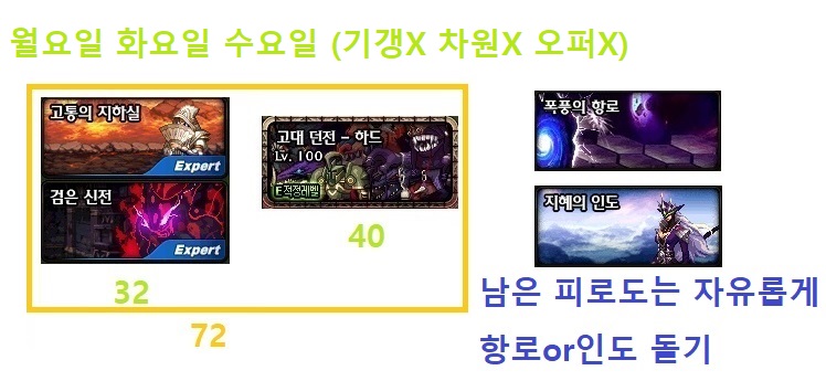 기갱, 차원, 오퍼 안돌 때의 경우 (월,화,수)